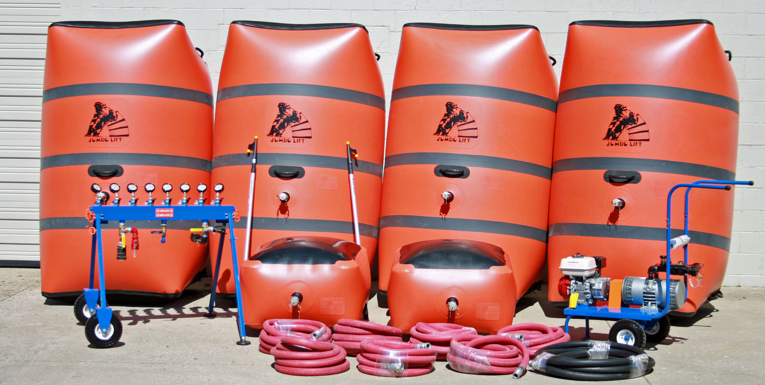 80,000lb Lift Capacity This Kit includes: 2- Turbo Super Starter Cushions. 4- Turbo Jumbo Turbo Angle Top Cushions. 1- 6 Port Expandable Valve Bank with overload protection. 1- Turbo Air Compressor cart with Honda Engine. 8- 30' 1-1/4" Turbo Hoses 2- Placing Poles with Hook 6- Dust Plugs. 4- Storage Carabiners. 10-Operator Badges 1- Repair Kit 1- Instructions |